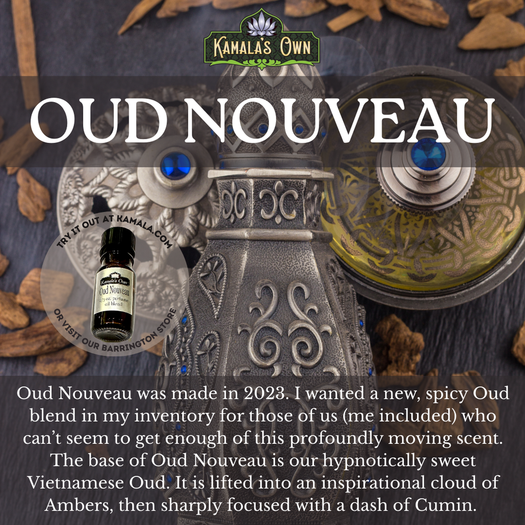 Oud Nouveau was made in 2023. I wanted a new, spicy Oud blend in my inventory for those of us (me included) who can’t seem to get enough of this profoundly moving scent. The base of Oud Nouveau is our hypnotically sweet Vietnamese Oud. It is lifted into an inspirational cloud of Ambers, then sharply focused with a dash of Cumin.